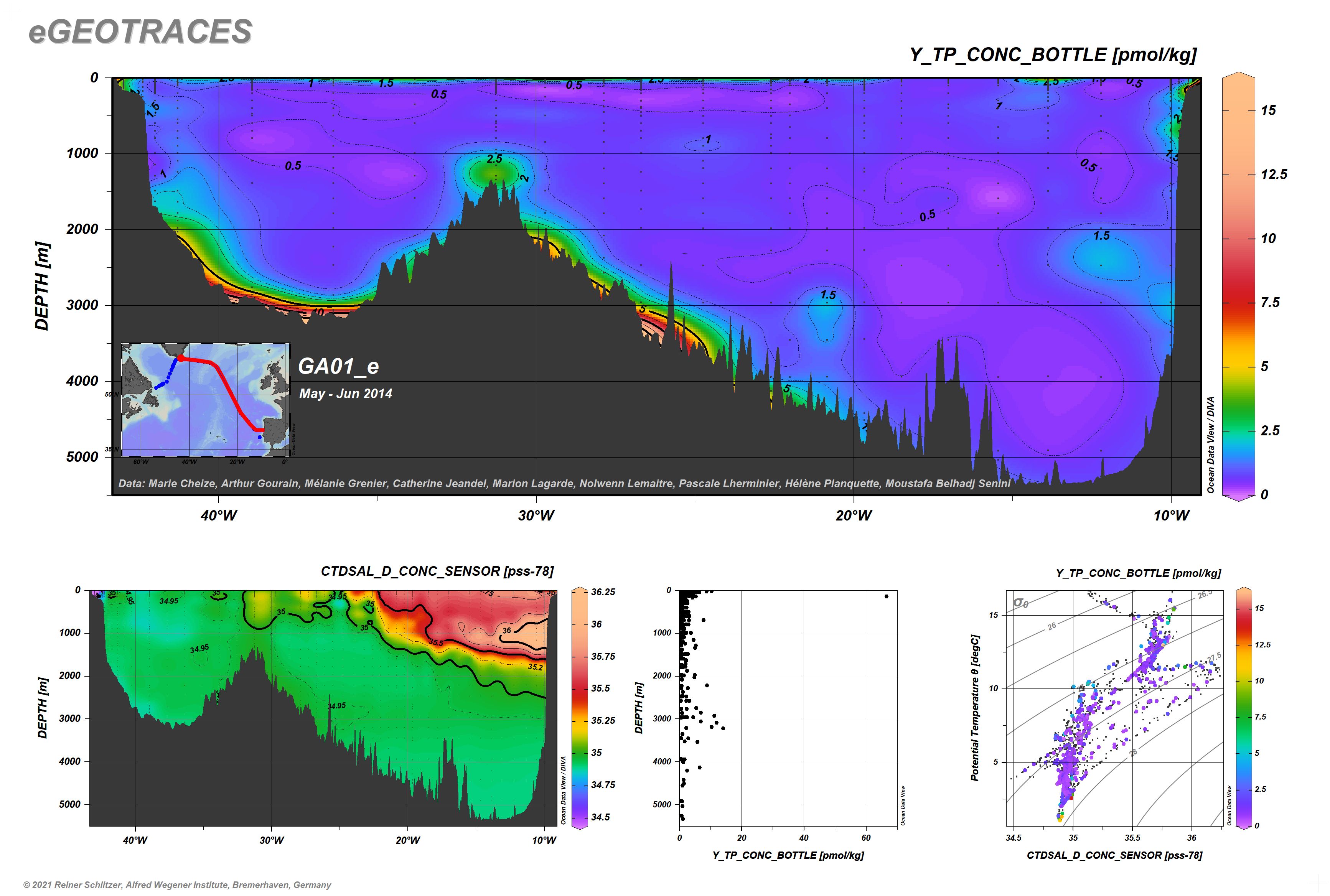 Other tracers along this section: Al dissolved | Al total particulate | Ba total particulate | Cd total particulate | Co total particulate | Cr total particulate | CTDSAL | Cu total particulate | Fe dissolved | Fe total particulate | Hg total | Methyl Hg total | Mn total particulate | Mo total particulate | Nitrate | Oxygen (CTD) | P total particulate | Pb dissolved | Pb total particulate | Pb_206_204 ratio, dissolved | Pb_206_207 ratio, dissolved | Pb_208_207 ratio, dissolved | Potential Temperature | Ra_226 dissolved | Salinity | Silicate | Ti total particulate | V total particulate