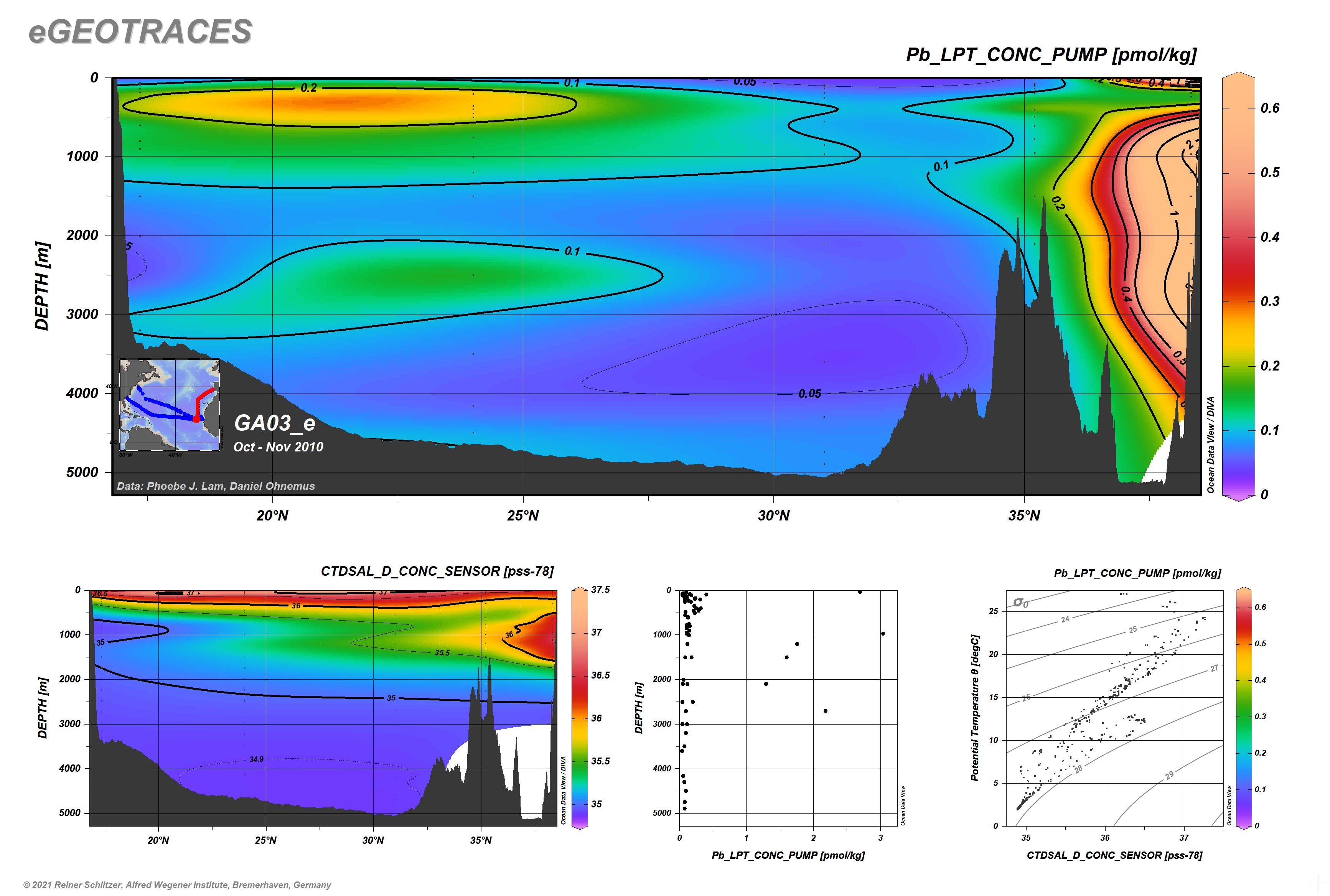 Other tracers along this section: Ag small particulate, total | Al dissolved | Al large particulate, total | Al small particulate, total | Ba dissolved | Ba large particulate, total | Ba small particulate, total | bSi large particulate, total | bSi small particulate, total | Cd dissolved | Cd large particulate, total | Cd small particulate, total | Ce dissolved | CFC-11 | CFC-12 | CFC113 | Co dissolved | Co large particulate, total | Co small particulate, total | CTDSAL | Cu dissolved | Cu large particulate, total | Cu small particulate, total | delta Cd_114_110 | delta DIC_13_12 | delta Fe_56_54 | delta H2O_18_16 | delta H2O_2_1 | delta He_3_4 | delta Nitrate_15_14 | delta Zn_66_64 | Dy dissolved | epsilon Nd_143_144 | Er dissolved | Eu dissolved | Fe dissolved | Fe large particulate, total | Fe small particulate, total | Fe soluble | Fe_II dissolved | Ga dissolved | Gd dissolved | Helium | Hg dissolved | Ho dissolved | L1Cu dissolved | L1Cu_D_LogK | L1Fe dissolved | L1Fe_D_LogK | L2Fe dissolved | L2Fe_D_LogK | La dissolved | Lu dissolved | Mn dissolved | Mn large particulate, total | Mn small particulate, total | Nd dissolved | Nd large particulate, total | Nd small particulate, total | Neon | Ni dissolved | Ni large particulate, total | Ni small particulate, total | Nitrate | Nitrite | Oxygen (CTD) | Oxygen (Winkler) | P large particulate, total | P small particulate, total | Pa_231 dissolved | Particle Mass large particulate, total | Particle Mass small particulate, total | Pb dissolved | Pb small particulate, total | Pb_206_207 ratio, dissolved | Pb_208_207 ratio, dissolved | Phosphate | PIC large particulate, total | PIC small particulate, total | POC large particulate, total | POC small particulate, total | Potential Temperature | Pr dissolved | Ra_223 dissolved | Ra_224 dissolved | Ra_226 dissolved | Ra_228 dissolved | Salinity | SF6 | Silicate | Sm dissolved | Tb dissolved | Th large particulate, total | Th small particulate, total | Th_228 dissolved | Th_228 small particulate, total | Th_230 dissolved | Th_232 dissolved | Th_234 small particulate, total | Th_234 total | Ti large particulate, total | Ti small particulate, total | Tm dissolved | Total Alkalinity | Tritium | V large particulate, total | V small particulate, total | Y dissolved | Y large particulate, total | Y small particulate, total | Yb dissolved | Zn dissolved