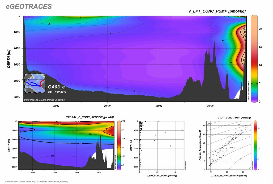 Other tracers along this section: Ag small particulate, total | Al dissolved | Al large particulate, total | Al small particulate, total | Ba dissolved | Ba large particulate, total | Ba small particulate, total | bSi large particulate, total | bSi small particulate, total | Cd dissolved | Cd large particulate, total | Cd small particulate, total | Ce dissolved | CFC-11 | CFC-12 | CFC113 | Co dissolved | Co large particulate, total | Co small particulate, total | CTDSAL | Cu dissolved | Cu large particulate, total | Cu small particulate, total | delta Cd_114_110 | delta DIC_13_12 | delta Fe_56_54 | delta H2O_18_16 | delta H2O_2_1 | delta He_3_4 | delta Nitrate_15_14 | delta Zn_66_64 | Dy dissolved | epsilon Nd_143_144 | Er dissolved | Eu dissolved | Fe dissolved | Fe large particulate, total | Fe small particulate, total | Fe soluble | Fe_II dissolved | Ga dissolved | Gd dissolved | Helium | Hg dissolved | Ho dissolved | L1Cu dissolved | L1Cu_D_LogK | L1Fe dissolved | L1Fe_D_LogK | L2Fe dissolved | L2Fe_D_LogK | La dissolved | Lu dissolved | Mn dissolved | Mn large particulate, total | Mn small particulate, total | Nd dissolved | Nd large particulate, total | Nd small particulate, total | Neon | Ni dissolved | Ni large particulate, total | Ni small particulate, total | Nitrate | Nitrite | Oxygen (CTD) | Oxygen (Winkler) | P large particulate, total | P small particulate, total | Pa_231 dissolved | Particle Mass large particulate, total | Particle Mass small particulate, total | Pb dissolved | Pb large particulate, total | Pb small particulate, total | Pb_206_207 ratio, dissolved | Pb_208_207 ratio, dissolved | Phosphate | PIC large particulate, total | PIC small particulate, total | POC large particulate, total | POC small particulate, total | Potential Temperature | Pr dissolved | Ra_223 dissolved | Ra_224 dissolved | Ra_226 dissolved | Ra_228 dissolved | Salinity | SF6 | Silicate | Sm dissolved | Tb dissolved | Th large particulate, total | Th small particulate, total | Th_228 dissolved | Th_228 small particulate, total | Th_230 dissolved | Th_232 dissolved | Th_234 small particulate, total | Th_234 total | Ti large particulate, total | Ti small particulate, total | Tm dissolved | Total Alkalinity | Tritium | V small particulate, total | Y dissolved | Y large particulate, total | Y small particulate, total | Yb dissolved | Zn dissolved