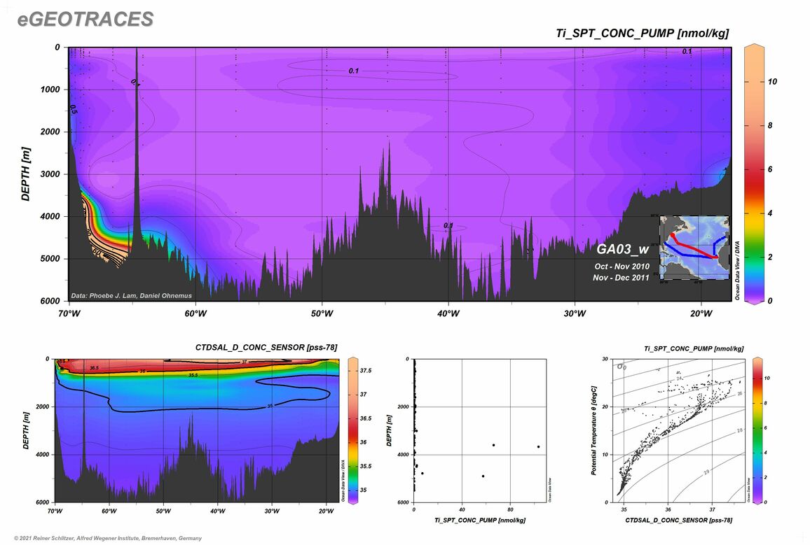 Description: Concentration of total particulate titanium determined by in situ filtration (pump) collected on a main filter (small particles).