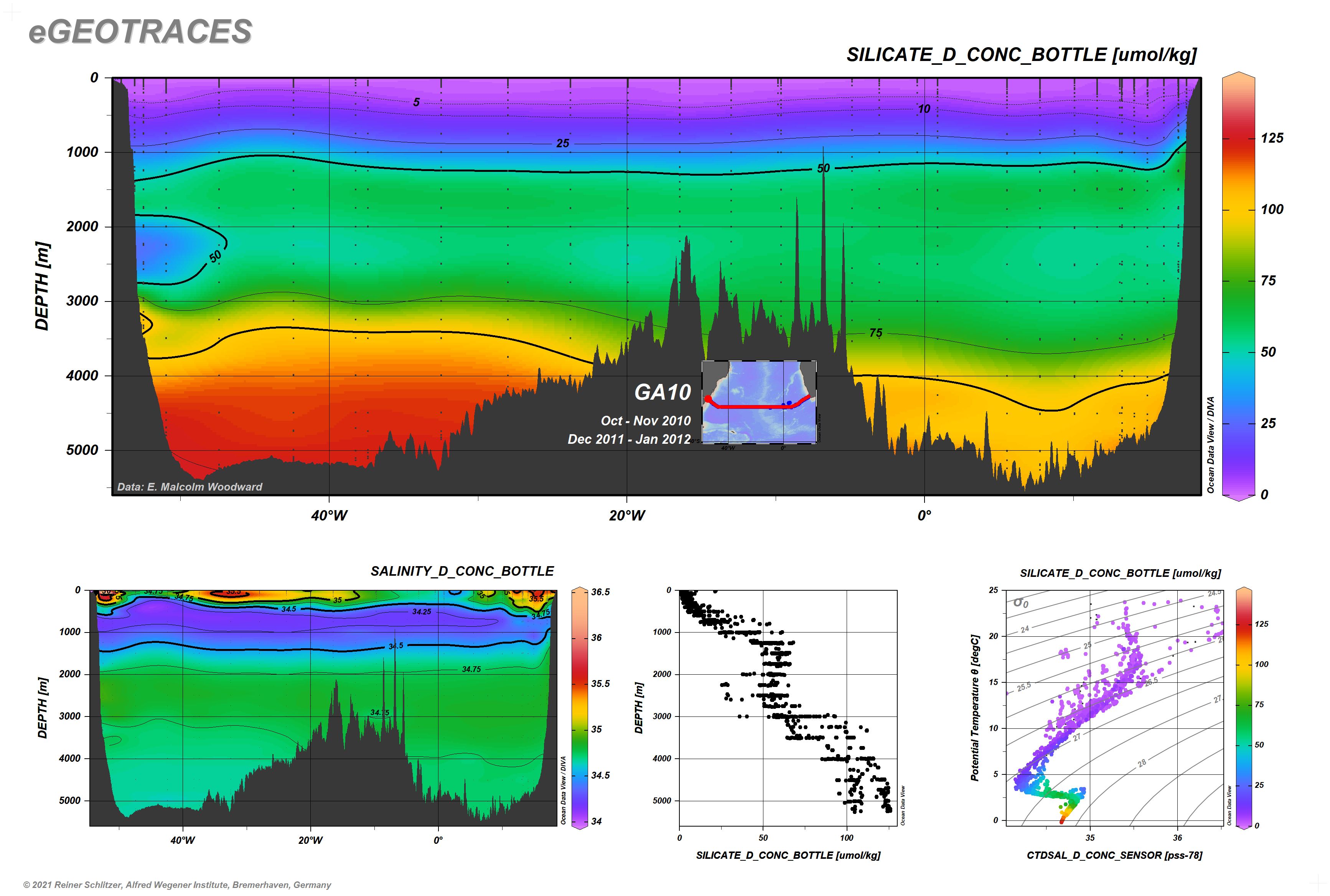 Other tracers along this section: Al dissolved | Al total particulate | Ba dissolved | Ba total particulate | Beta Car_HPLC total particulate | But fuco_HPLC total particulate | Cd dissolved | Cd total particulate | Ce dissolved | Chl a_HPLC total particulate | Chl b_HPLC total particulate | Co dissolved | Co total particulate | CTDSAL | Cu dissolved | Cu total particulate | delta Ba_138_134 | delta Fe_56_54 | delta Nitrate_15_14 | Diadino_HPLC total particulate | Dissolved Inorganic Carbon | DV chl a_HPLC total particulate | Dy dissolved | epsilon Nd_143_144 | Er dissolved | Eu dissolved | Fe dissolved | Fe total particulate | Fuco_HPLC total particulate | Gd dissolved | Hex fuco_HPLC total particulate | Ho dissolved | La dissolved | Lu dissolved | Mn dissolved | Mn total particulate | Mo total particulate | Nd dissolved | Ni dissolved | Ni total particulate | Nitrite | NO2+NO3 | Oxygen (CTD) | Oxygen (Winkler) | P total particulate | Pb dissolved | Pb total particulate | Pb_206_204 ratio, dissolvable | Pb_206_207 ratio, dissolvable | Pb_207_204 ratio, dissolvable | Pb_208_204 ratio, dissolvable | Pb_208_206 ratio, dissolvable | Pb_208_207 ratio, dissolvable | Perid_HPLC total particulate | Phosphate | Potential Temperature | Pr dissolved | Salinity | Sm dissolved | Tb dissolved | Th_230 dissolved | Th_232 dissolved | Ti dissolved | Ti total particulate | Tm dissolved | Total Alkalinity | V total particulate | Viola_HPLC total particulate | Yb dissolved | Zea_HPLC total particulate | Zn dissolved | Zn total particulate