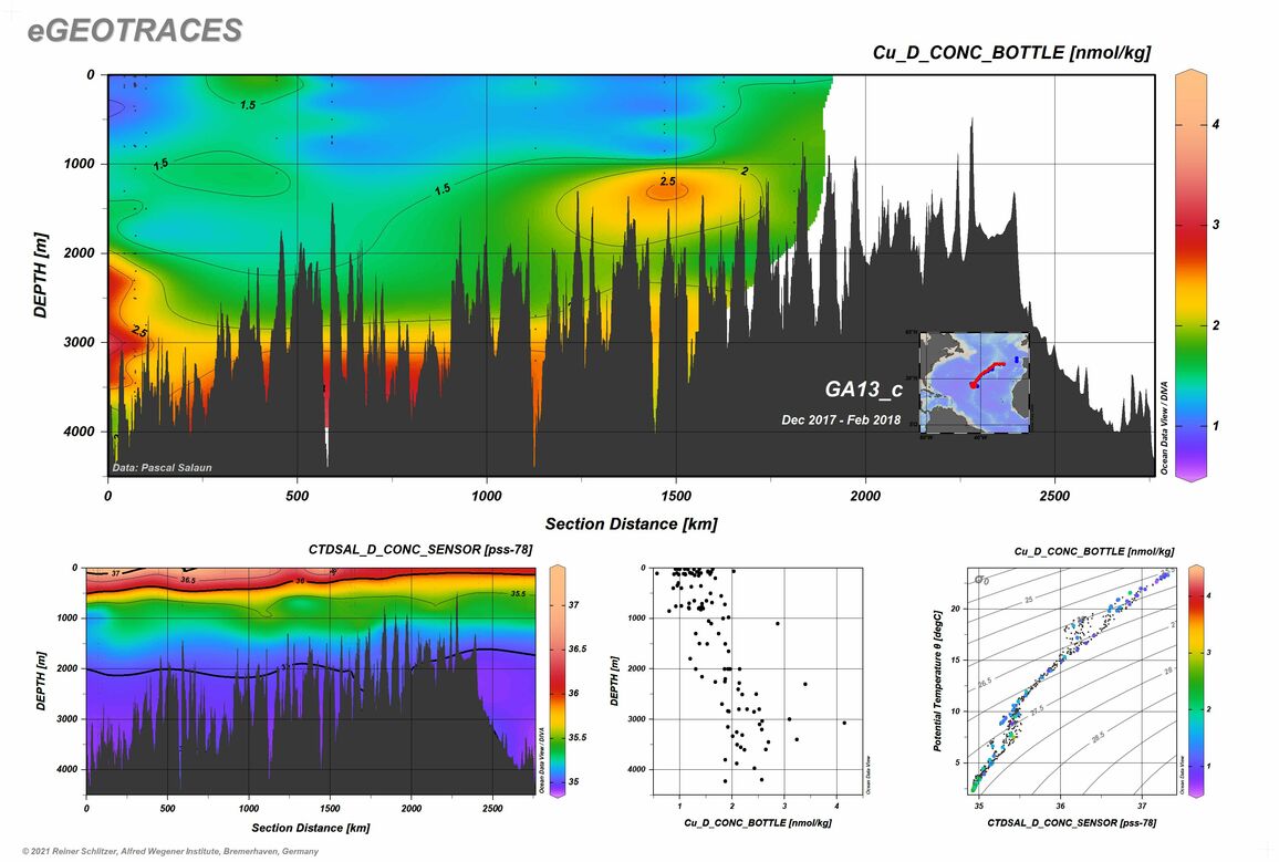 Other tracers along this section: CTDSAL | delta He_3_4 | Fe dissolved | Helium | L1Cu dissolved | L1Cu_D_LogK | Neon | Nitrite | NO2+NO3 | Oxygen (CTD) | Phosphate | Potential Temperature | Silicate