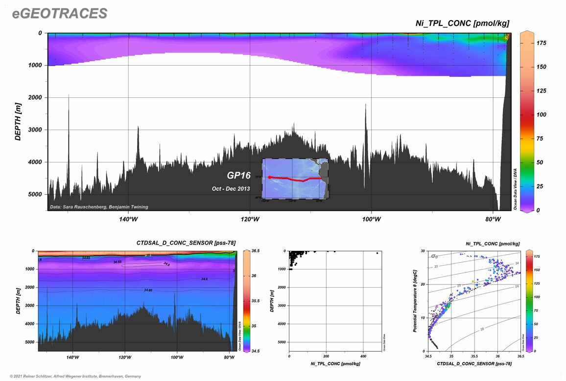 Other tracers along this section: Al large particulate, total | Al small particulate, total | Al total particulate | Al total particulate, labile | Ar dissolved | Ba dissolved | Ba total particulate | Ba total particulate, labile | bSi large particulate, total | bSi small particulate, total | Cd dissolved | Cd large particulate, total | Cd small particulate, total | Cd total particulate | Cd total particulate, labile | Ce total particulate | CFC-11 | CFC-12 | CFC113 | Co dissolved | Co large particulate, total | Co small particulate, total | Co total particulate | Co total particulate, labile | Cr total particulate | CTDSAL | Cu dissolved | Cu large particulate, total | Cu small particulate, total | Cu total particulate | Cu total particulate, labile | Cu_Cu' dissolved | delta Cd_114_110 | delta DIC_13_12 | delta DIC_14_12 | delta Fe_56_54 | delta He_3_4 | delta Nitrate_15_14 | delta Zn_66_64 | Dissolved Organic Carbon | Fe dissolved | Fe large particulate, total | Fe small particulate, total | Fe total particulate | Fe total particulate, labile | Ga dissolved | Helium | Hg dissolved | Kr dissolved | L1Cu dissolved | L1Cu_D_LogK | L1Fe dissolved | L1Fe_D_LogK | L2Fe dissolved | L2Fe_D_LogK | La total particulate | Mn dissolved | Mn large particulate, total | Mn small particulate, total | Mn total particulate | Mn total particulate, labile | Mo dissolved | N large particulate, total | N small particulate, total | Nd large particulate, total | Nd small particulate, total | Nd total particulate | Neon | Ni dissolved | Ni large particulate, total | Ni small particulate, total | Ni total particulate | Nitrate | Nitrite | Oxygen (CTD) | Oxygen (Winkler) | P large particulate, total | P small particulate, total | P total particulate | P total particulate, labile | Pa_231 dissolved | Pa_231 small particulate, total | Particle Mass large particulate, total | Particle Mass small particulate, total | Pb dissolved | Pb large particulate, total | Pb small particulate, total | Pb total particulate | Pb total particulate, labile | Phosphate | PIC large particulate, total | PIC small particulate, total | POC large particulate, total | POC small particulate, total | Potential Temperature | Ra_226 dissolved | Ra_228 dissolved | Salinity | Sc total particulate | SF6 | Silicate | Th total particulate | Th total particulate, labile | Th_230 dissolved | Th_230 small particulate, total | Th_232 dissolved | Th_232 small particulate, total | Th_234 large particulate, total | Th_234 small particulate, total | Th_234 total | Ti large particulate, total | Ti small particulate, total | Ti total particulate | Ti total particulate, labile | Tritium | V dissolved | V large particulate, total | V small particulate, total | V total particulate | V total particulate, labile | Xe dissolved | Y large particulate, total | Y small particulate, total | Y total particulate | Zn dissolved | Zn total particulate | Zn total particulate, labile