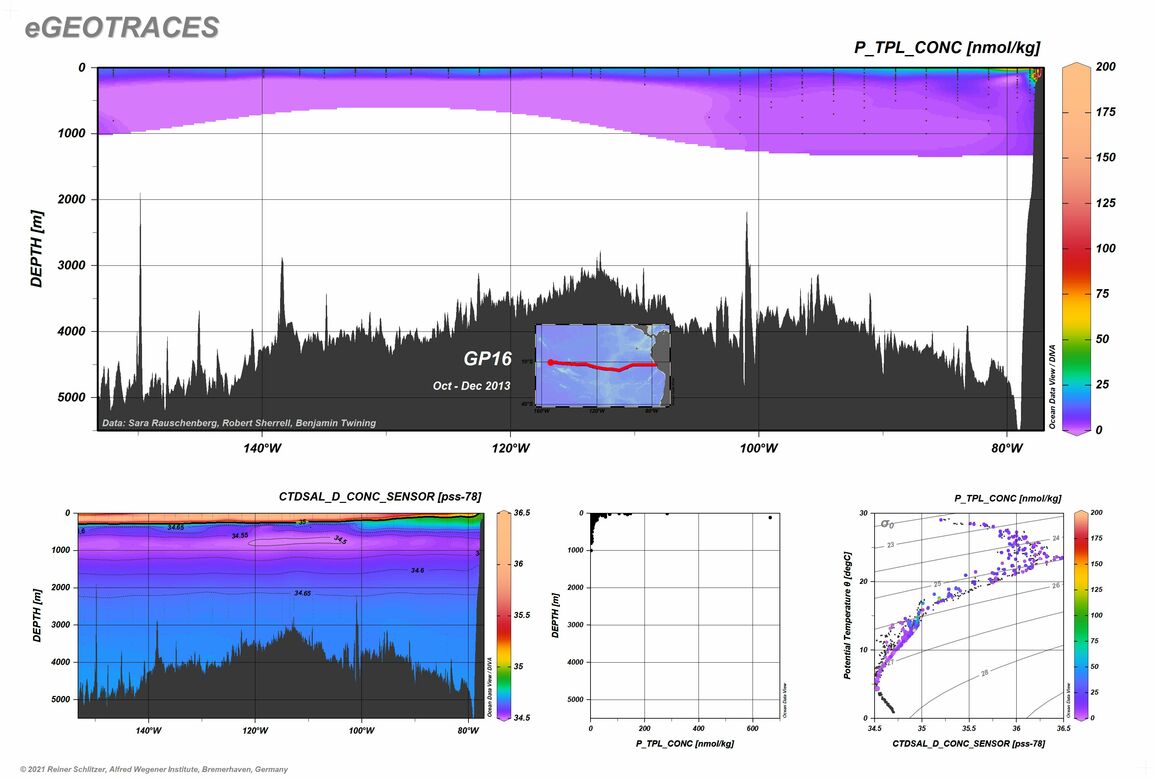 Other tracers along this section: Al large particulate, total | Al small particulate, total | Al total particulate | Al total particulate, labile | Ar dissolved | Ba dissolved | Ba total particulate | Ba total particulate, labile | bSi large particulate, total | bSi small particulate, total | Cd dissolved | Cd large particulate, total | Cd small particulate, total | Cd total particulate | Cd total particulate, labile | Ce total particulate | CFC-11 | CFC-12 | CFC113 | Co dissolved | Co large particulate, total | Co small particulate, total | Co total particulate | Co total particulate, labile | Cr total particulate | CTDSAL | Cu dissolved | Cu large particulate, total | Cu small particulate, total | Cu total particulate | Cu total particulate, labile | Cu_Cu' dissolved | delta Cd_114_110 | delta DIC_13_12 | delta DIC_14_12 | delta Fe_56_54 | delta He_3_4 | delta Nitrate_15_14 | delta Zn_66_64 | Dissolved Organic Carbon | Fe dissolved | Fe large particulate, total | Fe small particulate, total | Fe total particulate | Fe total particulate, labile | Ga dissolved | Helium | Hg dissolved | Kr dissolved | L1Cu dissolved | L1Cu_D_LogK | L1Fe dissolved | L1Fe_D_LogK | L2Fe dissolved | L2Fe_D_LogK | La total particulate | Mn dissolved | Mn large particulate, total | Mn small particulate, total | Mn total particulate | Mn total particulate, labile | Mo dissolved | N large particulate, total | N small particulate, total | Nd large particulate, total | Nd small particulate, total | Nd total particulate | Neon | Ni dissolved | Ni large particulate, total | Ni small particulate, total | Ni total particulate | Ni total particulate, labile | Nitrate | Nitrite | Oxygen (CTD) | Oxygen (Winkler) | P large particulate, total | P small particulate, total | P total particulate | Pa_231 dissolved | Pa_231 small particulate, total | Particle Mass large particulate, total | Particle Mass small particulate, total | Pb dissolved | Pb large particulate, total | Pb small particulate, total | Pb total particulate | Pb total particulate, labile | Phosphate | PIC large particulate, total | PIC small particulate, total | POC large particulate, total | POC small particulate, total | Potential Temperature | Ra_226 dissolved | Ra_228 dissolved | Salinity | Sc total particulate | SF6 | Silicate | Th total particulate | Th total particulate, labile | Th_230 dissolved | Th_230 small particulate, total | Th_232 dissolved | Th_232 small particulate, total | Th_234 large particulate, total | Th_234 small particulate, total | Th_234 total | Ti large particulate, total | Ti small particulate, total | Ti total particulate | Ti total particulate, labile | Tritium | V dissolved | V large particulate, total | V small particulate, total | V total particulate | V total particulate, labile | Xe dissolved | Y large particulate, total | Y small particulate, total | Y total particulate | Zn dissolved | Zn total particulate | Zn total particulate, labile
