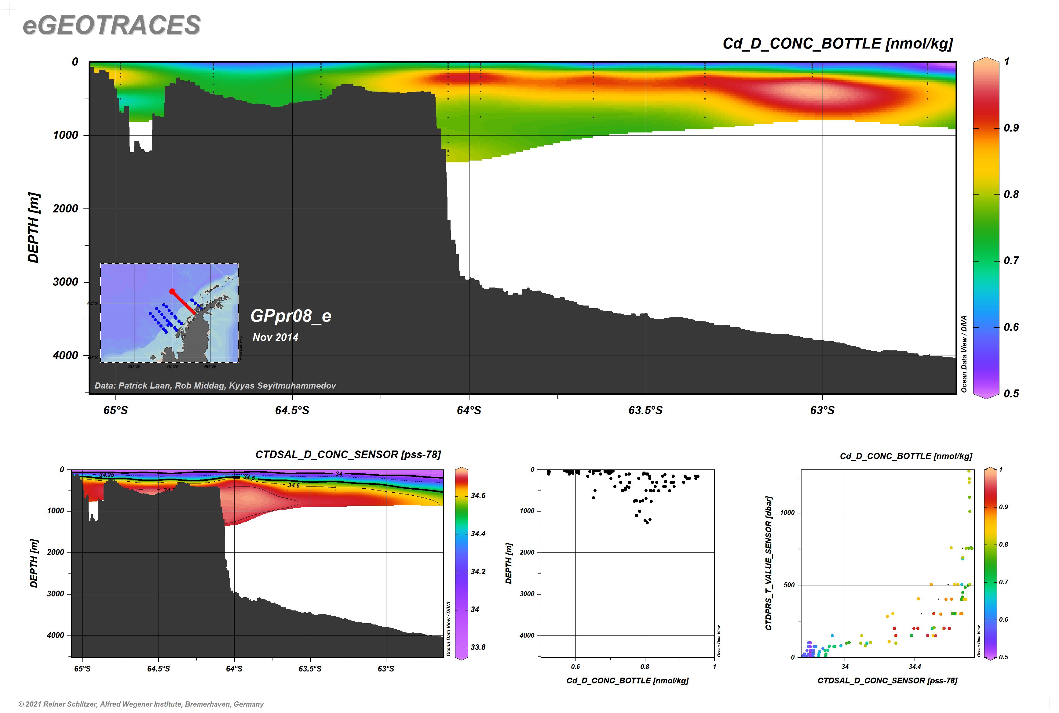 Other tracers along this section: Co dissolved | CTDSAL | Cu dissolved | delta H2O_18_16 | Fe dissolved | La dissolved | Mn dissolved | Ni dissolved | Oxygen (CTD) | Pb dissolved | Potential Temperature | Ti dissolved | Y dissolved | Zn dissolved