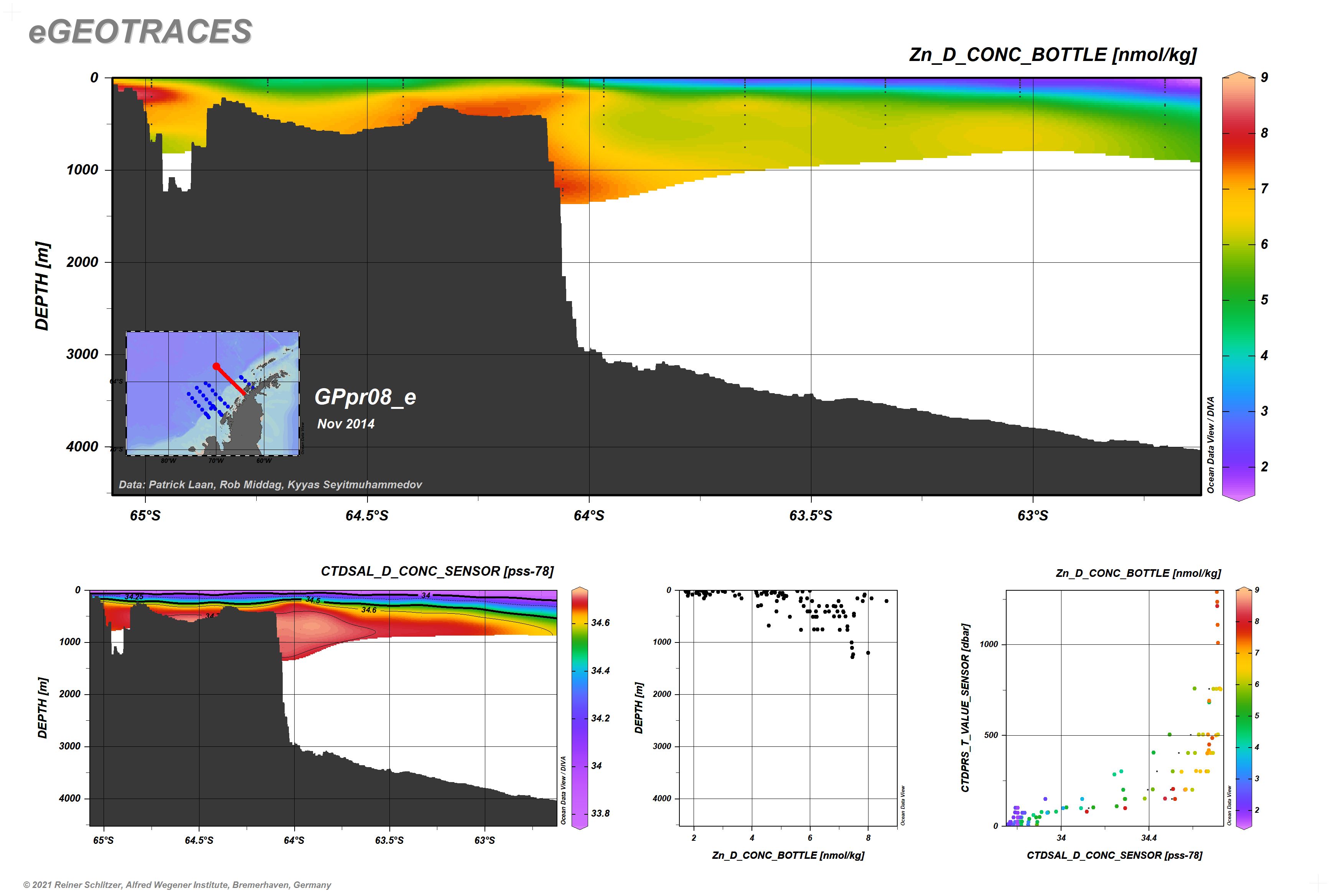 Other tracers along this section: Cd dissolved | Co dissolved | CTDSAL | Cu dissolved | delta H2O_18_16 | Fe dissolved | La dissolved | Mn dissolved | Ni dissolved | Oxygen (CTD) | Pb dissolved | Potential Temperature | Ti dissolved | Y dissolved