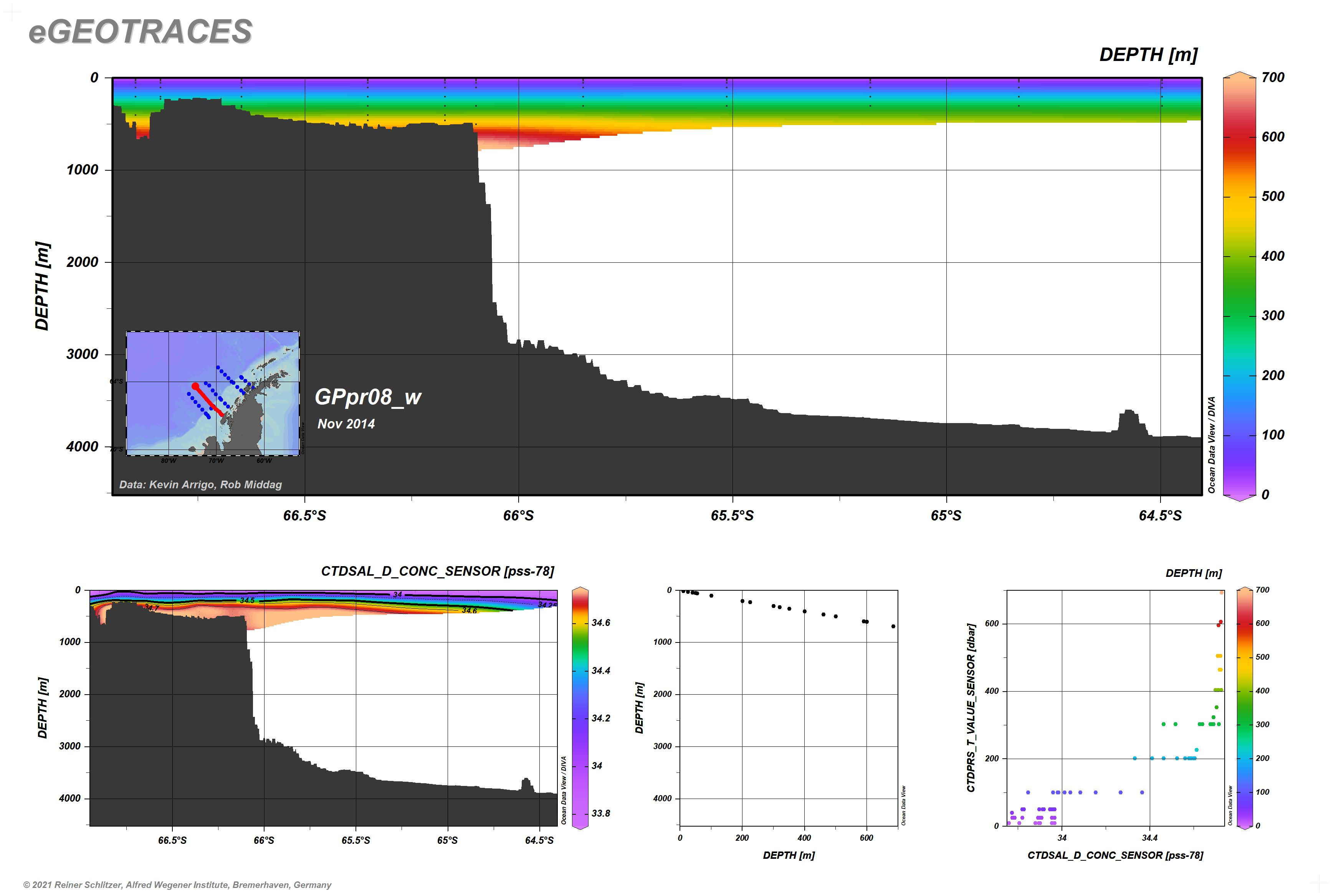 Other tracers along this section: Cd dissolved | Co dissolved | CTDSAL | Cu dissolved | delta H2O_18_16 | Fe dissolved | La dissolved | Mn dissolved | Ni dissolved | Oxygen (CTD) | Pb dissolved | Ti dissolved | Y dissolved | Zn dissolved